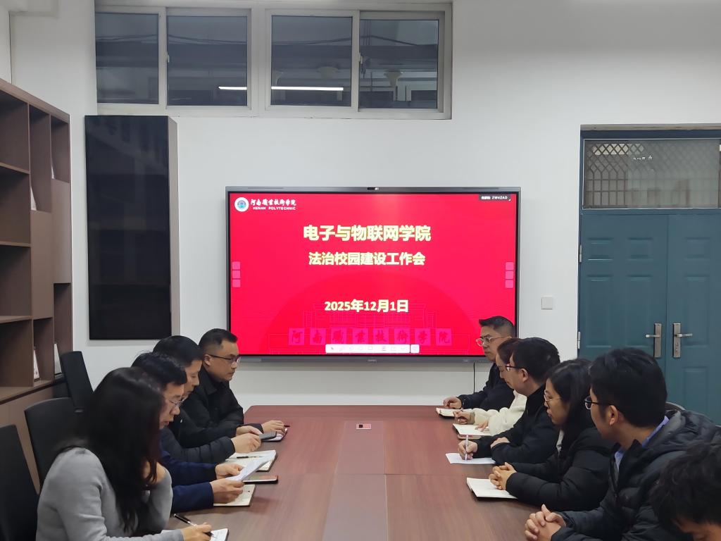 此次会议的召开,为学院持续深化法治校园建设、提升治理能力现代化水平指明了方向。作为电子与物联网学院落实学校“大法治生态工程”建设的关键举措,此次会议进一步明确了学院法治建设的重点任务与实施路径。同时,这也标志着电子与物联网学院2025年“宪法宣传周”活动正式拉开帷幕。接下来,学院将不断推进法治建设与教育教学、管理服务的深度融合,持续提升依法办学、依规治教的能力,为培养德法兼修的新时代高素质技能人才奠定坚实基础。(供稿:赵毅飞;审稿:谭营军)