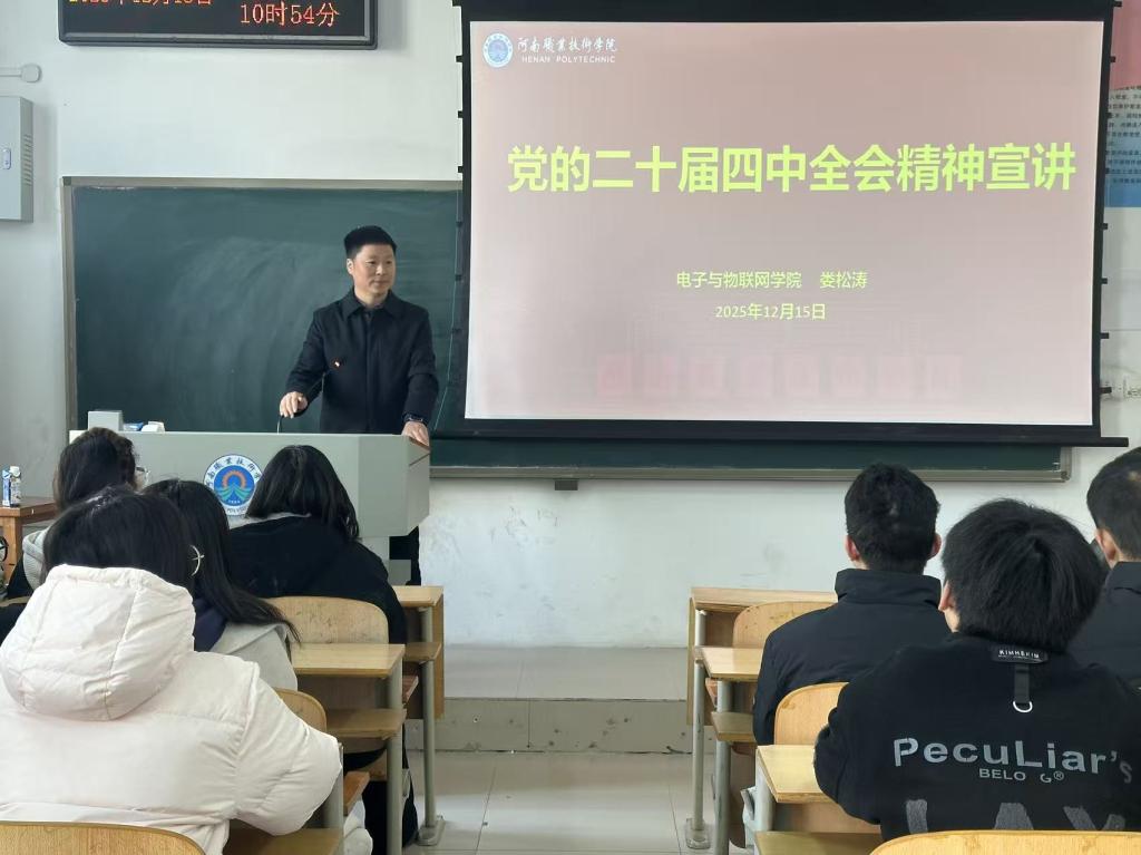为深入推进党的创新理论进班级、进头脑,引导青年学生准确把握国家发展大势与战略方向,12月15日上午,学院副院长(主持工作)娄松涛走进其联系的通信241班,在明德楼2302教室开展党的二十届四中全会精神专题宣讲。