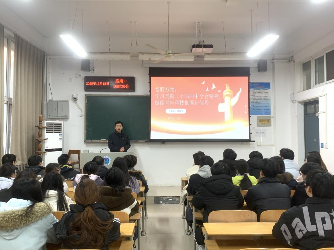 12月15日下午,学院党总支书记谭营军在2105教室以“智联万物:学习贯彻党的二十届四中全会精神,赋能青年科技报国新征程”为主题,面向物联网应用技术专业24级学生开展党的二十届四中全会精神宣讲活动,引导青年学生精准把握时代方位、切实强化使命担当。