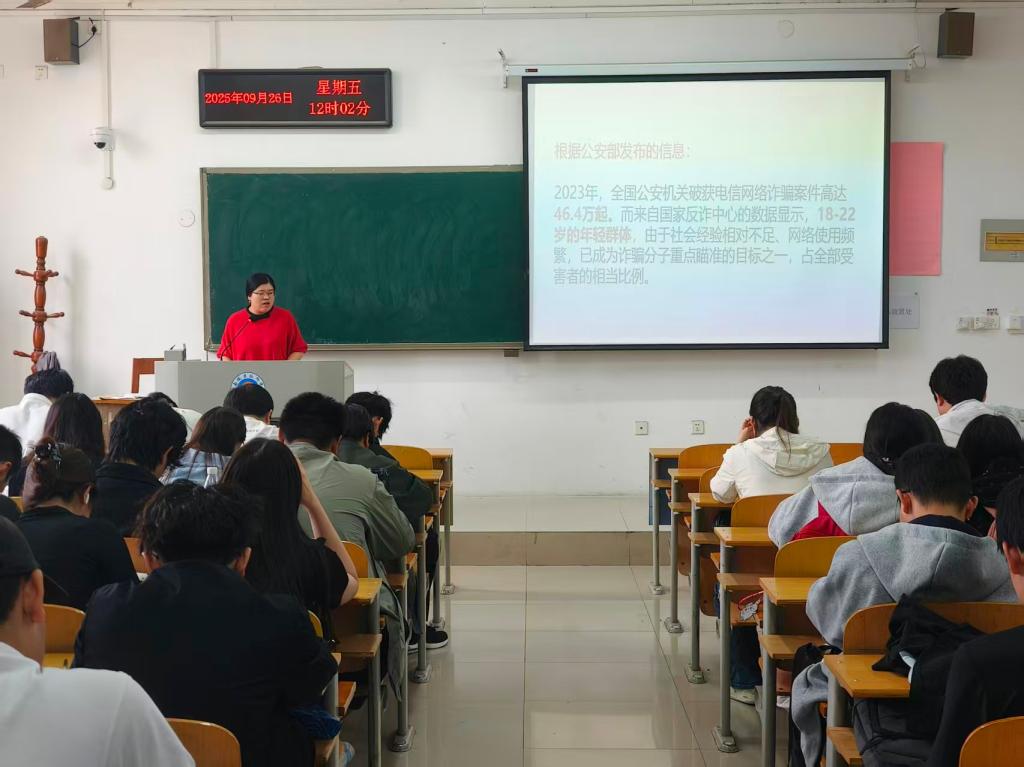 为深入贯彻落实学校关于加强反诈宣传教育工作的要求,切实提升学生防范电信网络诈骗的意识和能力,9月26日,电子与物联网学院各班级辅导员组织全体在校生在明理楼1201教室开展"筑牢反诈防火墙"主题班会。