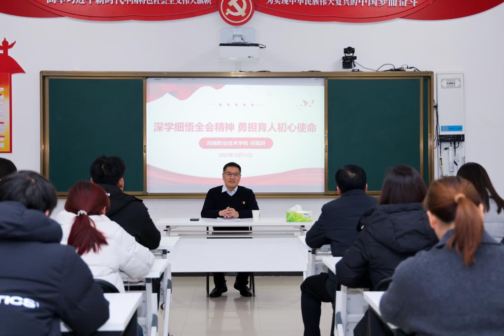 任枫轩以“深学细悟全会精神,勇担育人初心使命”为主题,系统阐述了四个方面内容:深刻认识全会的重大意义、准确把握《建议》的核心要义、全会精神的教育践行、以全会精神引领学校高质量发展。他指出,党的二十届四中全会是在“十四五”收官、“十五五”蓝图即将谋划的关键节点召开的一次重要会议。会议审议通过的《中共中央关于制定国民经济和社会发展第十五个五年规划的建议》,是指导未来五年发展的重要纲领性文件。全体师生要深刻领会、准确把握全会精神,将其作为当前和今后一个时期的重大政治任务。