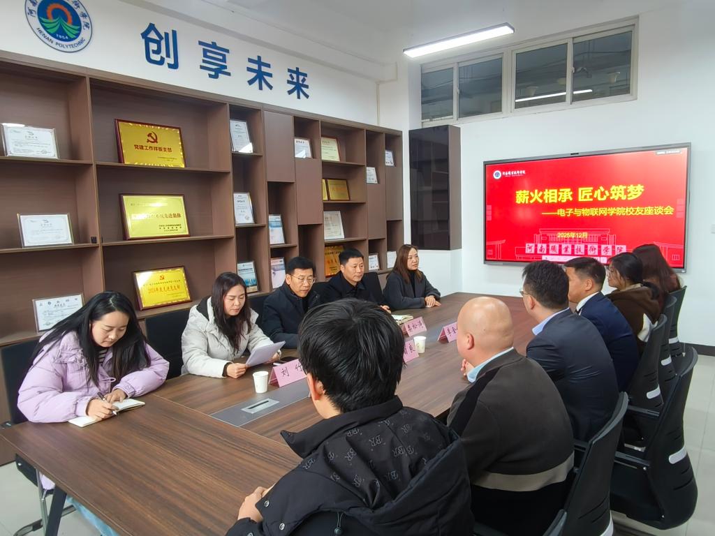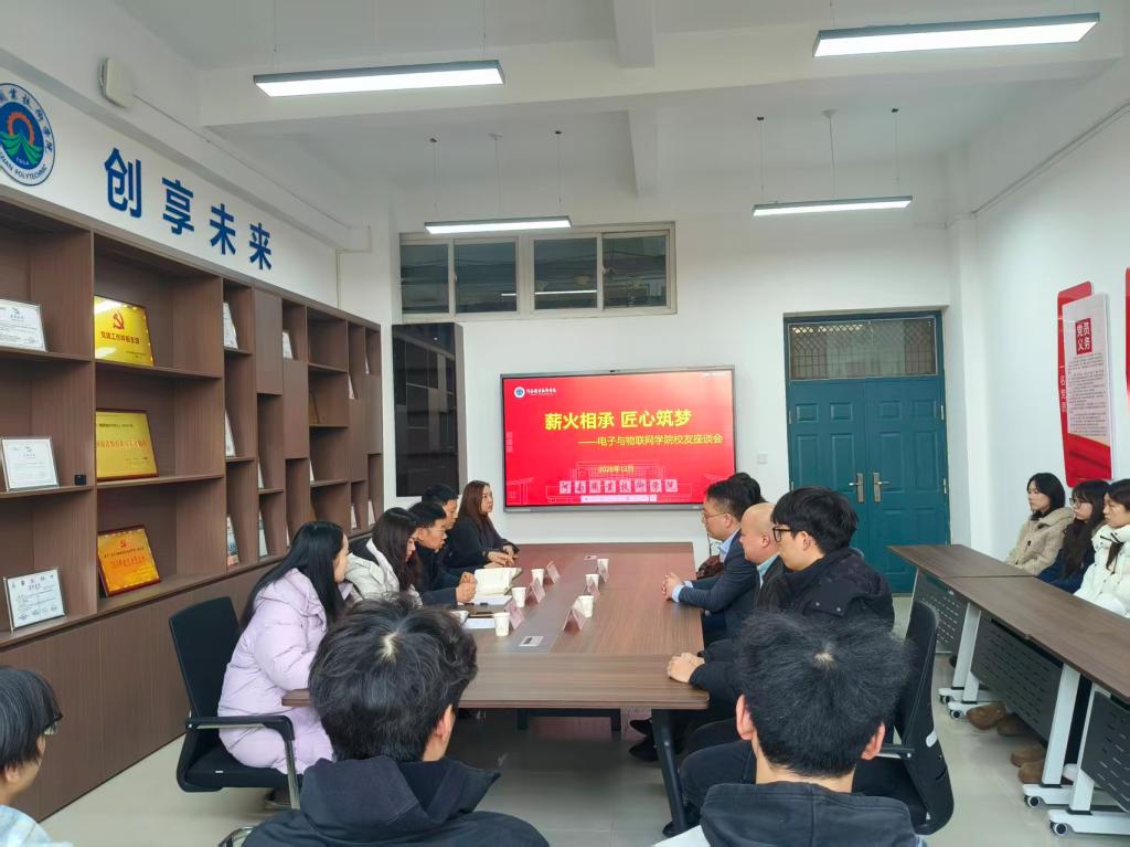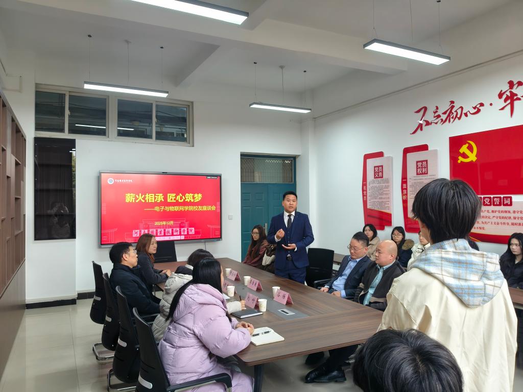 12月11日下午,电子与物联网学院在智行楼307会议室举办校友座谈会。学院党总支书记谭营军、副院长(主持工作)娄松涛参加会议,与3位优秀校友及在校学生代表共叙情谊、共话成长、共谋发展。会议由党总支副书记刘竹主持。