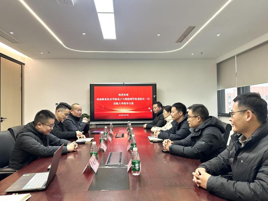 为深化产教融合、对接行业技术发展,1月19日下午,电子与物联网学院副院长娄松涛(主持行政工作)、副院长孙雷明及教研室主任一行赴浙江大华技术股份有限公司河南分公司开展校企合作调研。