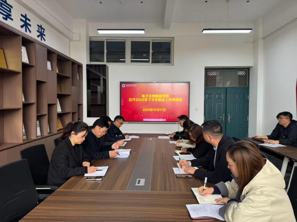 10月22日,电子与物联网学院在智行楼307会议室召开2025年下半年就业工作推进会,重点部署2026届毕业生就业启动工作。学院党政领导班子全体成员出席会议,会议由学院党总支书记谭营军主持。
