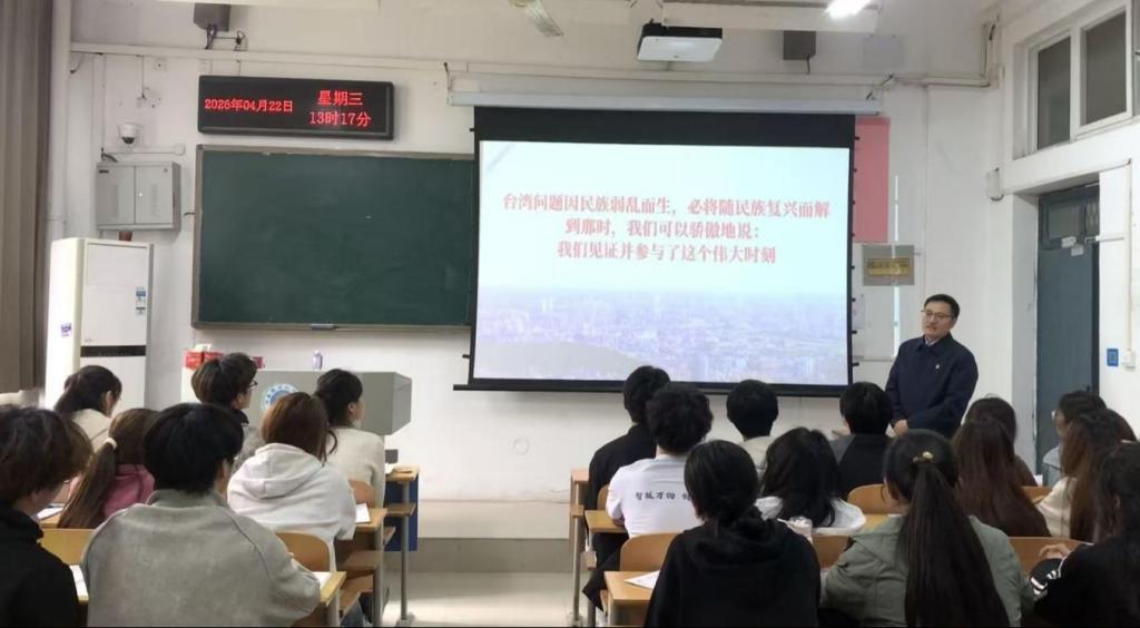 讲座中,任枫轩围绕中国台湾问题这一事关国家核心利益、民族根本福祉的重大议题,政治意义、历史脉络、政党格局、现实挑战及对台方略等五大维度系统阐释了两岸关系的演变过程,以及中国台湾问题的本质所在。他通过梳理历代中央政府对中国台湾的管辖与开发历程,结合国际社会公认的法律文件与联合国决议,有力地论证了中国台湾是中国领土不可分割的一部分两岸同胞同根同源,同文同种,源远流长的中华文化是两岸同胞心灵的根脉和归属。针对当前台海局势,他深入分析了岛内政治生态,阐明了我们坚决捍卫国家主权和领土完整的立场。同时,他勉励同学们要主动了解历史真相,理性应对网络杂音,在学好专业知识的同时,自觉成为维护国家统一、促进两岸青年交流的坚实力量。